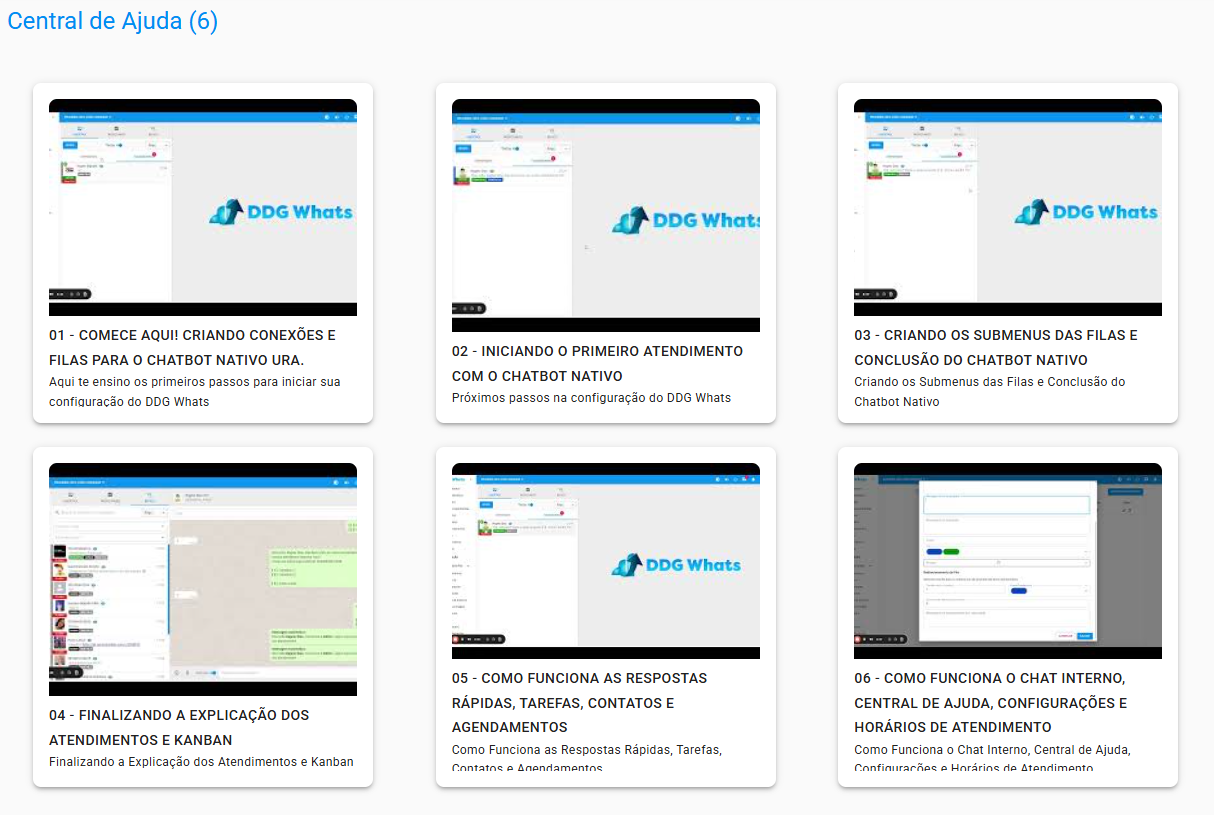 📄 Busque pelo tema desejado (ex.: “Como criar campanhas”, “Configurar filas”) e leia as orientações fornecidas.