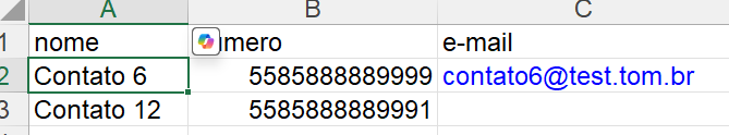 Importar: Importar os contatos usando a planilha modelo preenchida.
