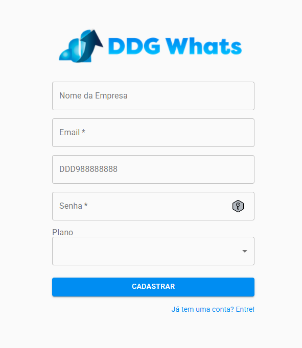 1️⃣ Na tela de login, clique em "Registre-se, agora mesmo!"