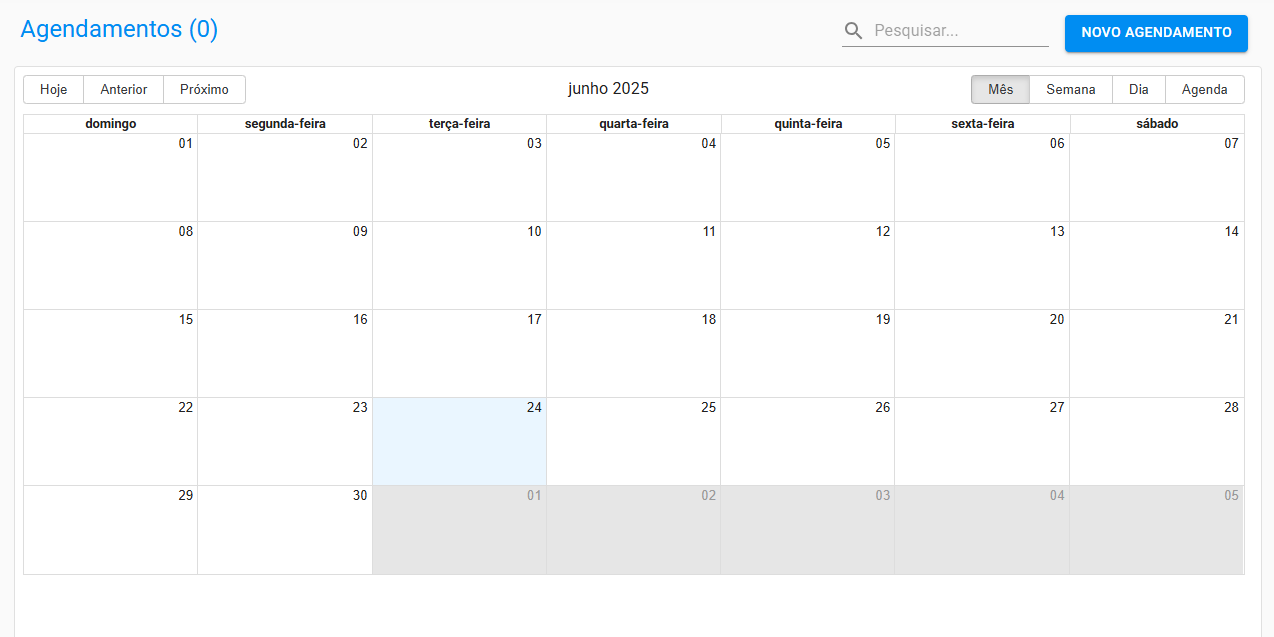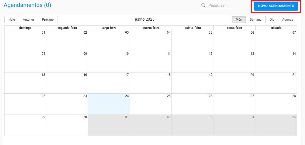 🖱 No canto superior direito, clique no botão azul Novo Agendamento.