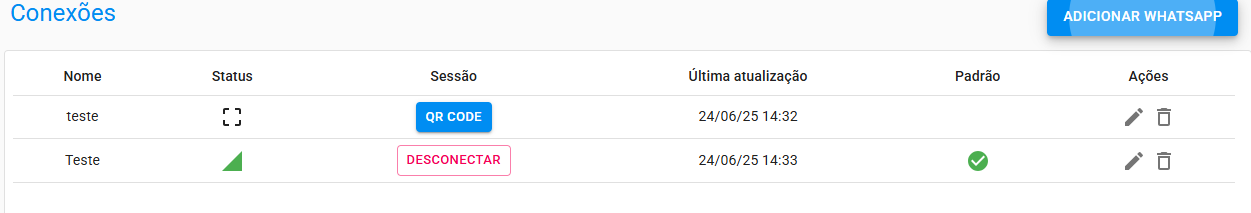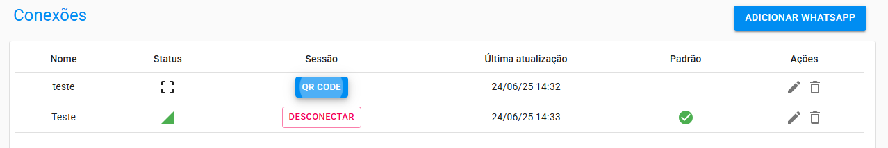 Na lista de conexões, clique em QR Code ao lado da conexão criada.