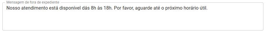 Fora de expediente: Nosso atendimento está disponível de [horário]. Por favor, aguarde até o próximo horário útil.