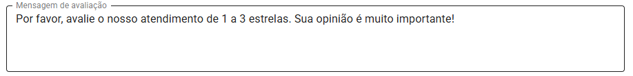Avaliação: Por favor, avalie o nosso atendimento de 1 a 3 estrelas. Sua opinião é muito importante!