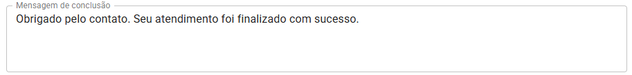 Conclusão: Obrigado pelo contato. Seu atendimento foi finalizado com sucesso.