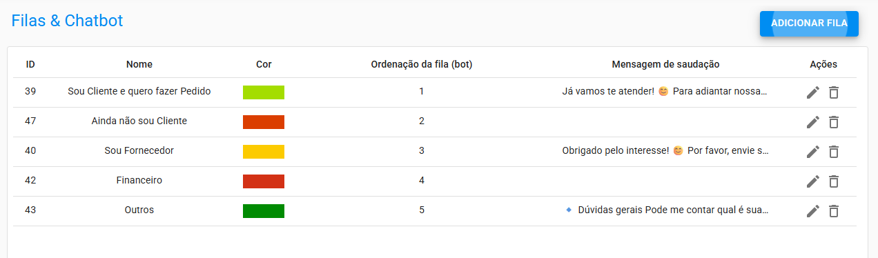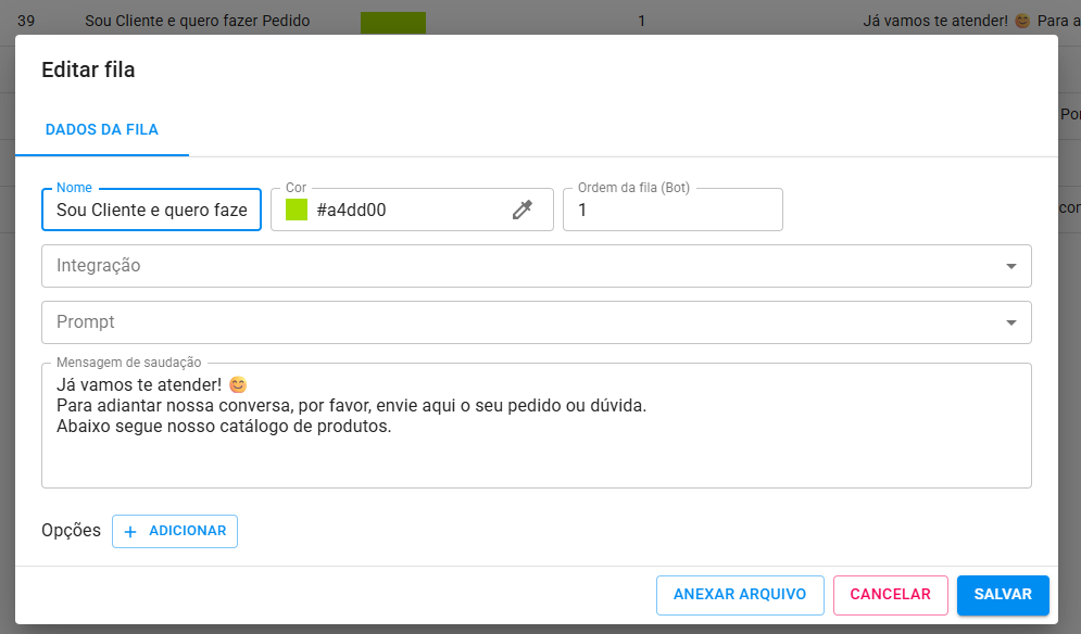 Ordem da fila (bot): Número que define a ordem que o bot apresentará essa fila ao cliente.