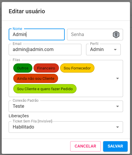 💡 Após criar, lembre-se de associar as filas aos usuários e conexões no sistema para que funcionem no atendimento.