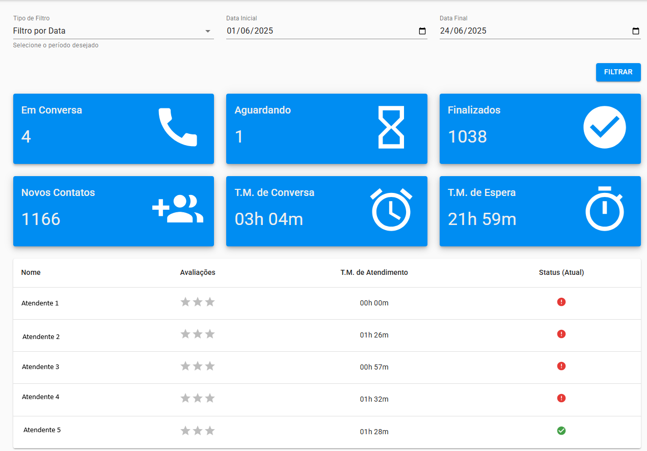 ✅ Organização por filas (ex: vendas, suporte, financeiro)
